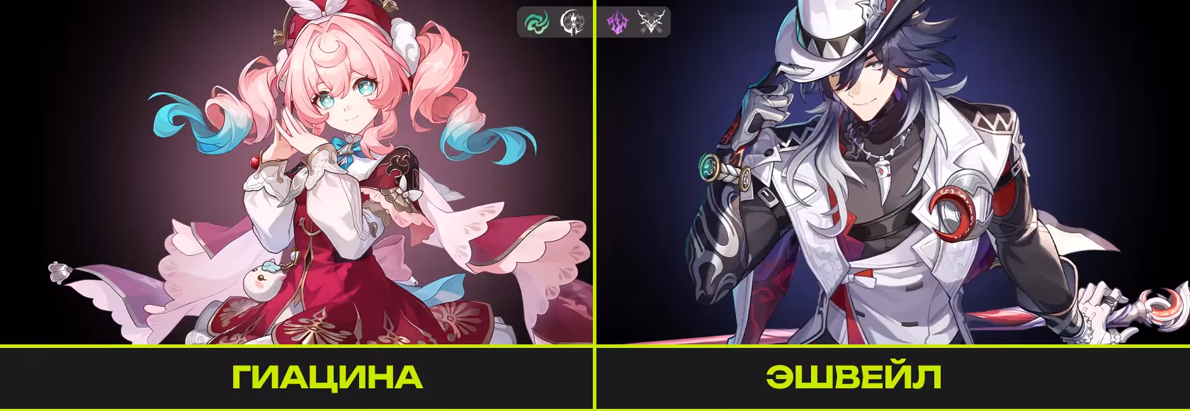 • Эшвейл — персонаж пути Охоты. Настоящий сигма-детектив. В холодильнике его не ищите, он щас в баннере• Гиацина — хозяйка самого имбового перса всего Амфореуса. Персонаж пути Памяти, хиллер и незаменимый член команды для пачек, играющих от ХП