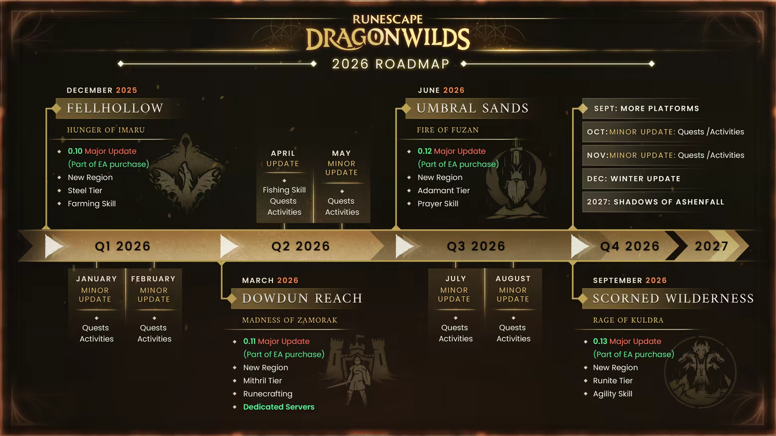 RuneScape: Dragonwilds is being shaped by player feedback every step of the way, from alpha through to 1.0 and beyond! The expansive continent of Ashenfall remains uncharted, and what lies beyond the veil is still a mystery… for now. Together, we’ll uncover its secrets. Our community will continue to help build and guide our roadmap, a living document that will change and adapt to make this adventure the best it can be. We can't wait!